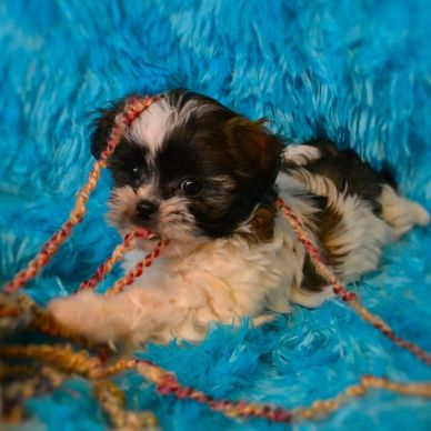 Black white 2 week old puppy. Their calm demeanor paired with their friendliness and small size. Puppies occasionally Mi-Ki puppies for sale please call for availability.
